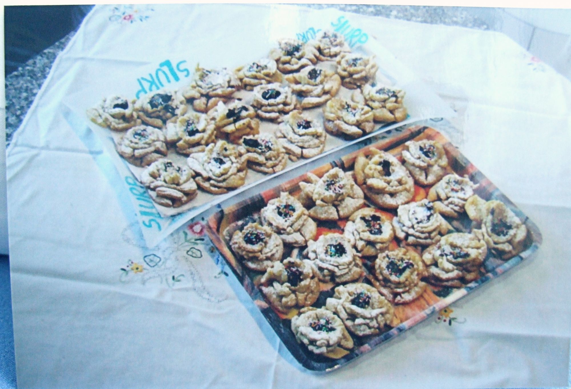 Appena la sfoglia è di colore rosa bisogna toglierla dall'olio e appena si raffredderà spolverare di zucchero a velo.