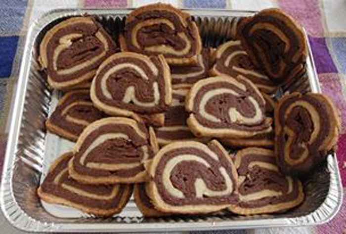 Stendete la sfoglia bianca e quella al cacao, spennellate la superficie della sfoglia bianca con l’albume e mettete sopra quella al cacao e pressatele leggermente con il mattarello per farle ben aderire.