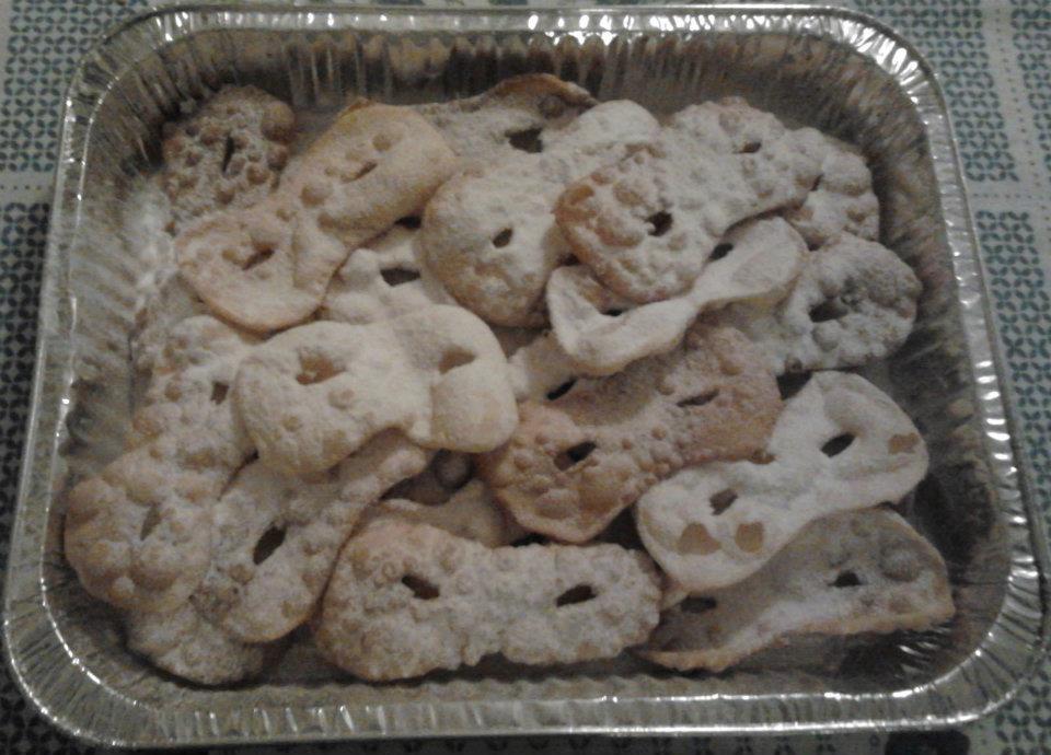 Cuocerle nell'olio di semi bollente e infine servirle con lo zucchero a velo.