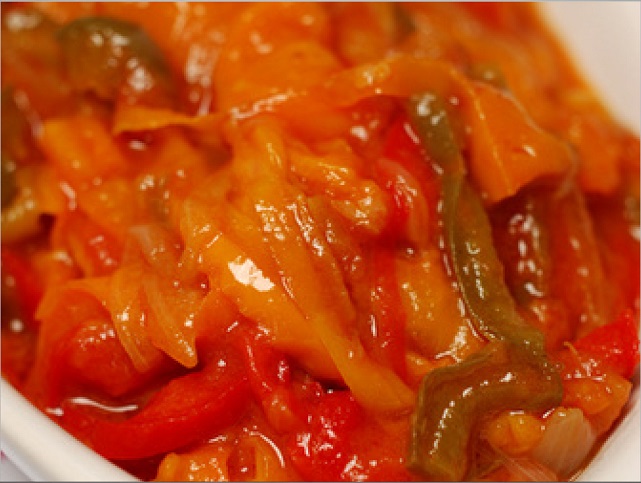 Prima di tutto si puliscono i peperoni eliminando il picciolo, aprendoli e togliendo tutti i semini e la parte bianca con un coltello. Sciacquarli sotto l’acqua corrente e tagliarli a striscioline sottili ma non troppo. Mettere i peperoni in una casseruola e farli rosolare con un pò d’olio d’oliva e la cipolla tritata. Una volta rosolato il tutto coprire i peperoni con dell’acqua, aggiungere la passata di pomodoro, del sale, lo zucchero e dell’origano. Portare ad ebollizione e far cuocere a fuoco moderato fino a che i peperoni si saranno ben ammorbiditi, se necessario aggiungere acqua per la cottura e aggiustare di sale, una volta cotto far asciugare ma non troppo dall’ acqua e servire tiepido con crostoni di pane.