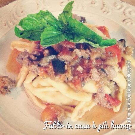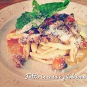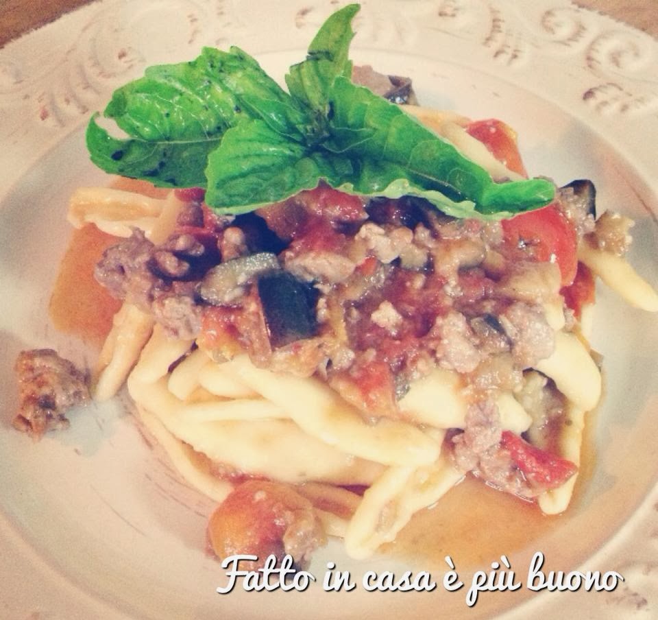 Oggi vi scrivo la preparazione del ragù di salsiccia e melanzane con le cortecce.