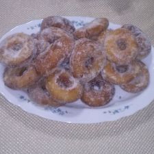 Bollire le patate e farle raffreddare un pò,privarle della buccia e schiacciarle con lo schiacciapatate. Aggiungere il burro a pezzetti,un po' di farina,il latte tiepido con il lievito,lo zucchero,le uova e aggiungere la restante farina. lavorare l'impasto e formare delle ciambelle. dopo che sono cresciute il doppio friggerle in olio bollente.Passarle nello zucchero a velo.