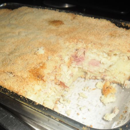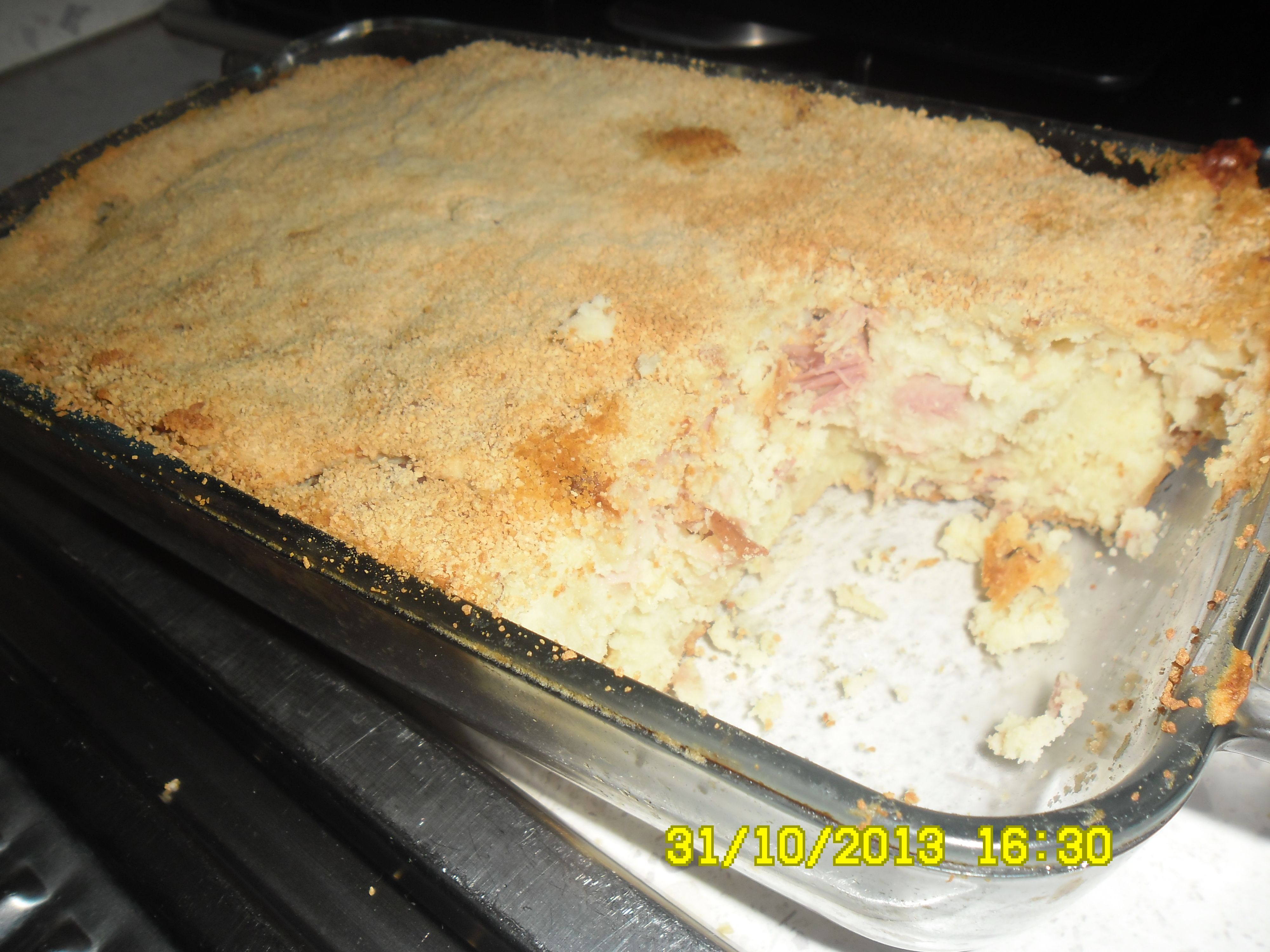 Imburrare una pirofila e foderare con pane grattugiato, metterci dentro l'impasto e fare su un altro strato di pane grattugiato.