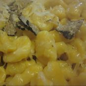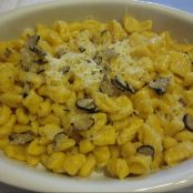 Versare gli gnocchi in una teglia da portata, grattugiare sopra il formaggio Monteson e infine terminare con il tartufo tagliato a lamelle.