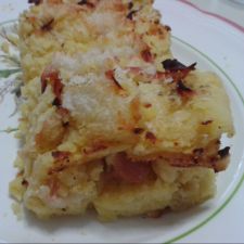 LESSARE LE PATATE....SBUCCIARLE E SCHIACCIARLE NELL'APPOSITO SCHIACCIAPATATE, AGGIUNGERE LA MORTADELLA, MOZZARELLA, PARMIGIANO, UOVO, SALE E PEPE AMALGAMARE TUTTO CON LE MANI....A PARTE PRENDERE UN TEGAME UNTO CON OLIO E COSPARGERE IL PAN GRATTATO...ADAGIARE L' IMPASTO NEL TEGAME E RIFINIRLO CON OLIO E UNO LEGGERO STRATO DI PAN GRATTATO....INFORNARE A 180° PER CIRCA 30 MINUTI!!!!BUON APPETITO