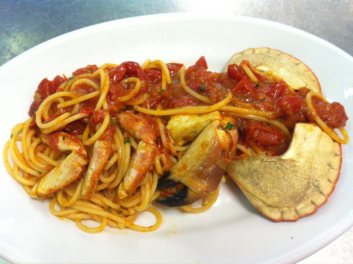 In una pentola versare dell’olio evo e rosolare uno spicchio d’aglio con peperoncino a piacere, aggiungere i granchi alcuni tagliati per meta’ in modo che cuocendo insaporiscano per bene il sugo. Appena hanno preso colore sfumare col vino bianco e far evaporare, salare e aggiungere la polpa di pomodoro e del prezzemolo tritato. Coprire parzialmente la pentola e far restringere il sughetto, circa 20 minuti. Lessare le linguine al dente e col sughetto ottenuto condirle spolverando con altro prezzemolo tritato.