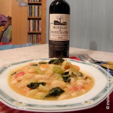 - Mettere a bagno i fagioli per circa 8 ore, lessateli in due litri di acqua. In altra pentola fate rosolare la cipolla tagliata a fettine nell'olio di oliva, aggiungete via via tutte le altre verdure tagliate grossolanamente e fatele appassire piano piano per circa 10 minuti, aggiungete quindi l'acqua di cottura dei fagioli e la metà degli stessi. L'altra metà li aggiungerete dopo averli passati al setaccio. Regolate sale e pepe e fate cuocere a fuoco basso per circa due ore. A questo punto aggiungete il pane tagliato a fettine, mescolate bene e fate bollire per altri dieci minuti. Lasciate riposare e servite in piatti di coccio con un filo d'olio extra vergine d'oliva rigorosamente toscano dal gusto fruttato intenso.
