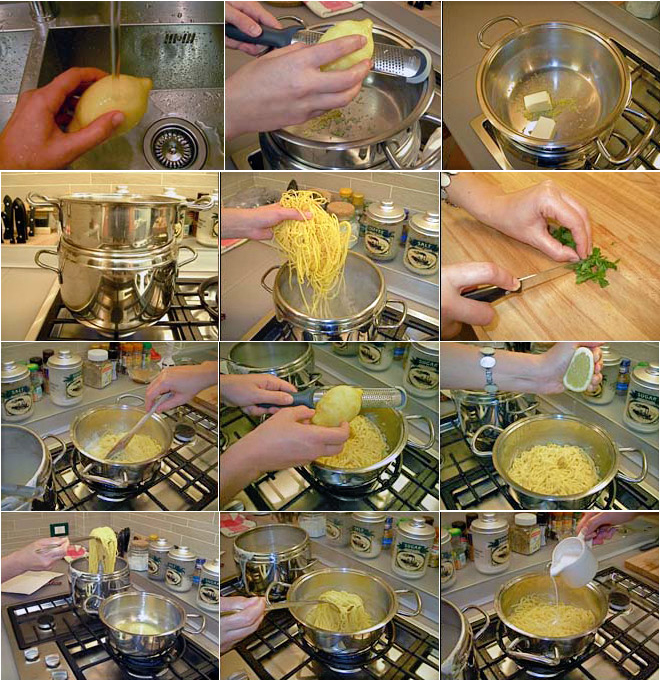 Per preparare i tagliolini al limone, cominciamo a mettendo a bollire l’acqua per la pasta. Laviamo molto accuratamente il limone sotto l’acqua corrente. Grattiamo, all'interno di un tegame, la parte gialla della buccia e facciamo attenzione a non grattare anche la parte bianca della buccia perché darebbe un sapore amaro al nostro piatto. Aggiungiamo il burro e mettiamo questo tegame sopra quello dove abbiamo messo a far bollire l’acqua, in modo che il burro si fonda e si aromatizzi con la buccia di limone.