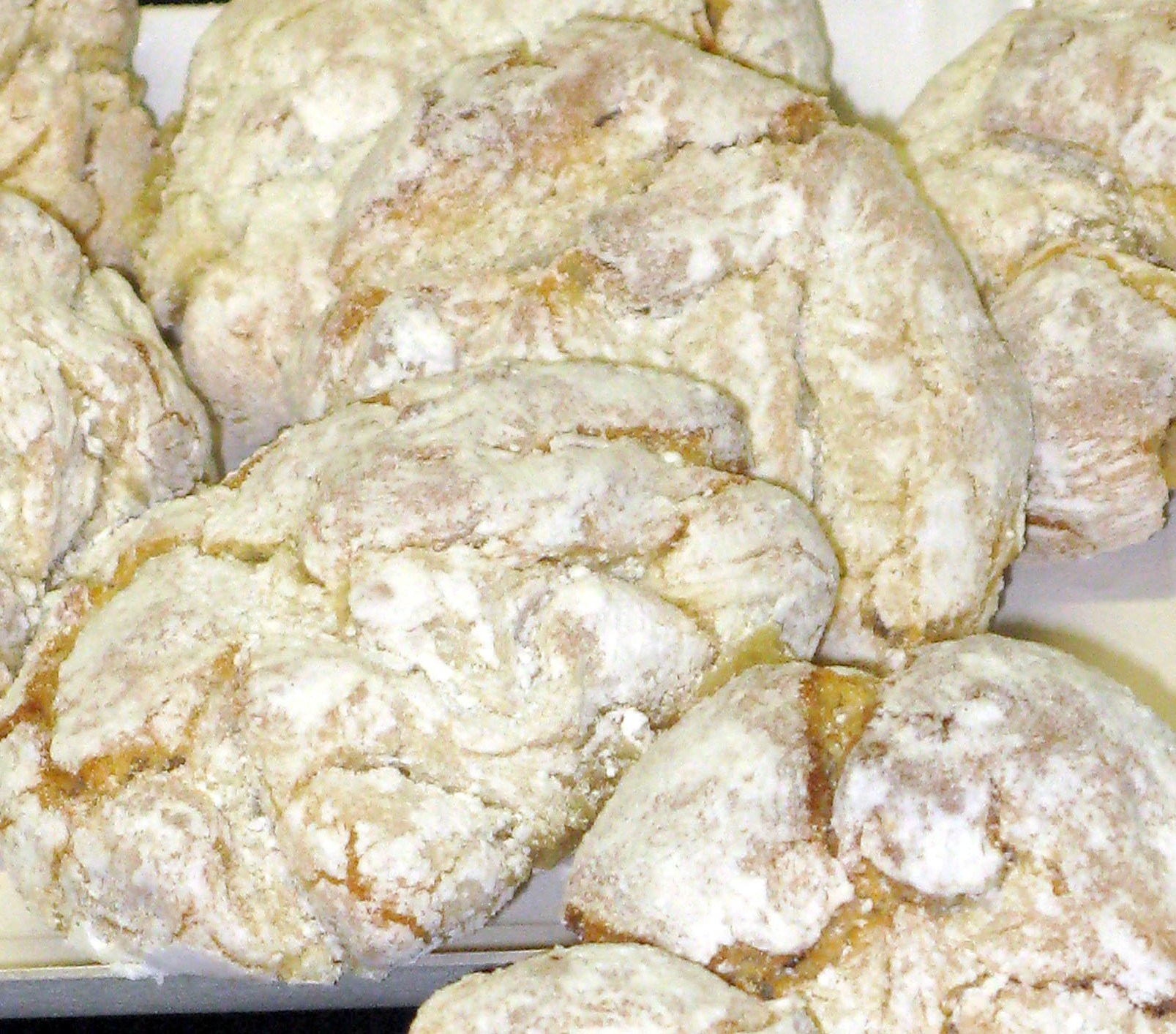 Mescolate la farina di mandorle con lo zucchero e passate la polvere ottenuta attraverso un settaccio raccogliendola in una capace ciotola, unitevi 200 gr. di zucchero a velo, la vanillina e la scorza di limone finemente grattugiata. Mescolate bene in modo che questi ingredienti siano ben amalgamati fra di loro.