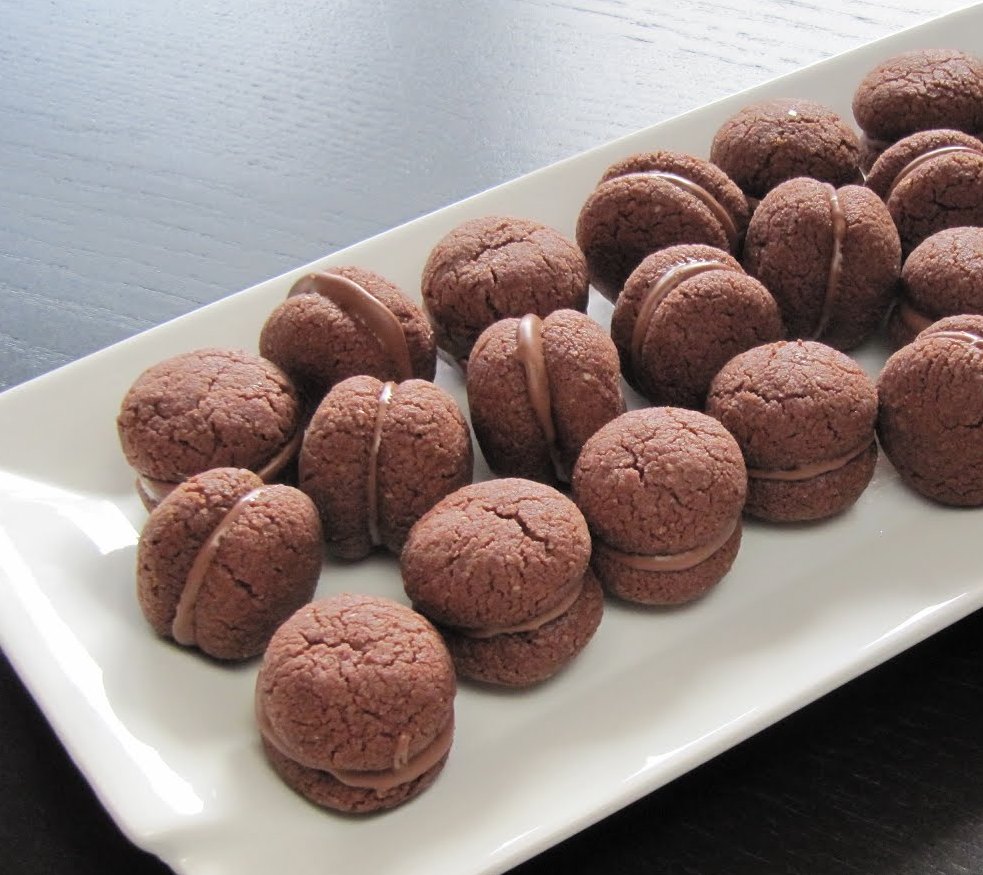 Quando le palline sono fredde, accoppiatele a due a due con uno strato di cioccolato fuso nel mezzo, aiutandovi con un cucchiaino o un pennellino.
