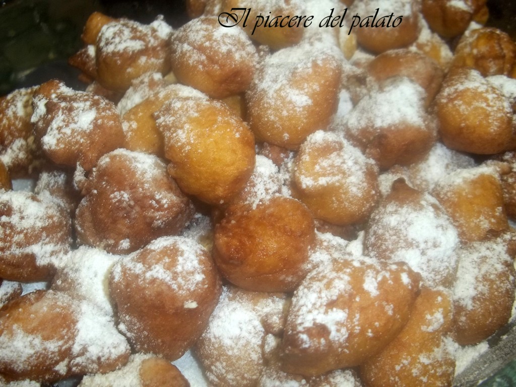 Tagliare la zucca a dadini e cuocerla in forno con la stagnola, a 200° per circa 40 minuti. Quando è cotta mettere la polpa nel mixer, unire uova, zucchero, scorza. Frullare il tutto. Setacciare il lievito e la farina, fino ad ottenere un composto omogeneo. L’impasto deve risultare morbido e con una consistenza tipo la colla. Scaldare l’olio di semi e con l’aiuto di un cucchiaio versare man mano il composto. Le frittelle si gonfieranno e appena saranno dorate metterle sulla carta assorbente e spolverare con lo zucchero a velo.