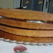 Ho separato in tre dischi il pandispagna, ho bagnato abbondantemente il primo disco con la bagna, e lo farcito con la metà dell'intera dose di ricotta.