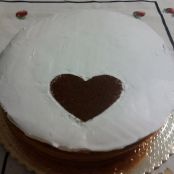 Ho ricoperto la superficie di panna, e lo messa un paio di minuti in frigo, ho fatto con un stencil un cuore, spolverizzando del cacao.