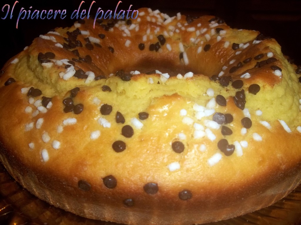 Lavorare la ricotta insieme allo zucchero, fino a rendere il composto cremoso. Aggiungere le uova intere (uno alla volta), il succo di arancia, e mescolare il tutto. Unire l’olio, continuando a mescolare e infine la farina setacciata, il lievito, la vanillina e un pizzico di sale. Imburrare e infarinare una tortiera a cerniera. Versare l’impasto e cospargre con delle gocce di cioccolato e granelle di zucchero. Infornare a 180 ° per circa 20 minuti.