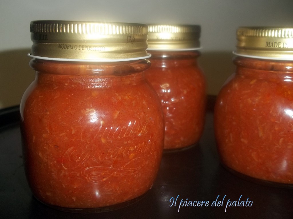 Essendo selvaggina bisogna passare prima alla marinatura. Mettere la polpa di cinghiale in un recipiente con 300 ml di vino rosso e un soffritto di mezza cipolla, mezza costa di sedano,1 spicchio d’aglio e olio. Aggiungere anche un rametto di rosmarino. Lasciare marinare per una notte intera. Sgocciolate la polpa di cinghiale e farla rosolare in una casseruola con qualche cucchiaio di olio, la pancetta, il sedano, la cipolla e l’aglio rimasti. Appena sarà ben dorata, tritare tutto al mixer e riporla ancora nella casseruola. Salare, pepare ed unire il vino rimasto,la polpa di pomodoro e il concentrato di pomooro. Fare cuocere a fiamma moderata per almeno 30/40 minuti, facendola asciugare un po’. Aggiustare di sale e pepe verso la fine della cottura.. Con queste dosi ho riempito 3 vasetti da 300 ml, 1 da 400 ml e due da 150 ml. I vasetti vanno sterilizzati in acqua bollente per una decina di minuti. Per aver una maggiore conservazione del ragu, metterlo in freezer. Ottimo con tagliatelle, pappardelle e ravioli.