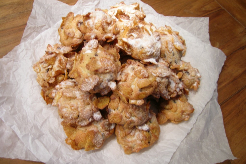 Formare delle palline, passarle nei corn flakes e metterle su una teglia con carta da forno.