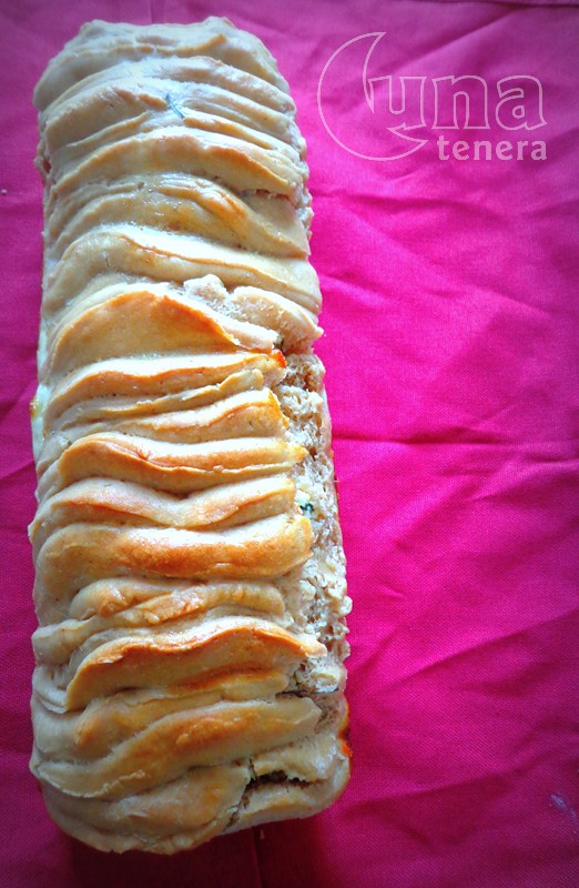 Farei una sfoglia di impasto di circa 5 mm, rotonda (il diametro deve essere della dimensione dello stampo), e mettere un cucchiio di crema di formaggio,piegare qquindi a metà i dischi e posizionarlii uno accanto all'altro nello stampo da plum cake.