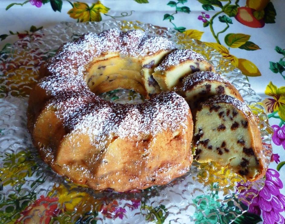 In una ciotola setacciare la ricotta , quindi unirvi lo zucchero e i tuorli d'uovo e mescolare con un frusta fino a rendere il tutto cremoso. Aggiungere la fecola di patate setacciata e la panna liquida, il lievito, quindi la vaniglia e le gocce di cioccolato.