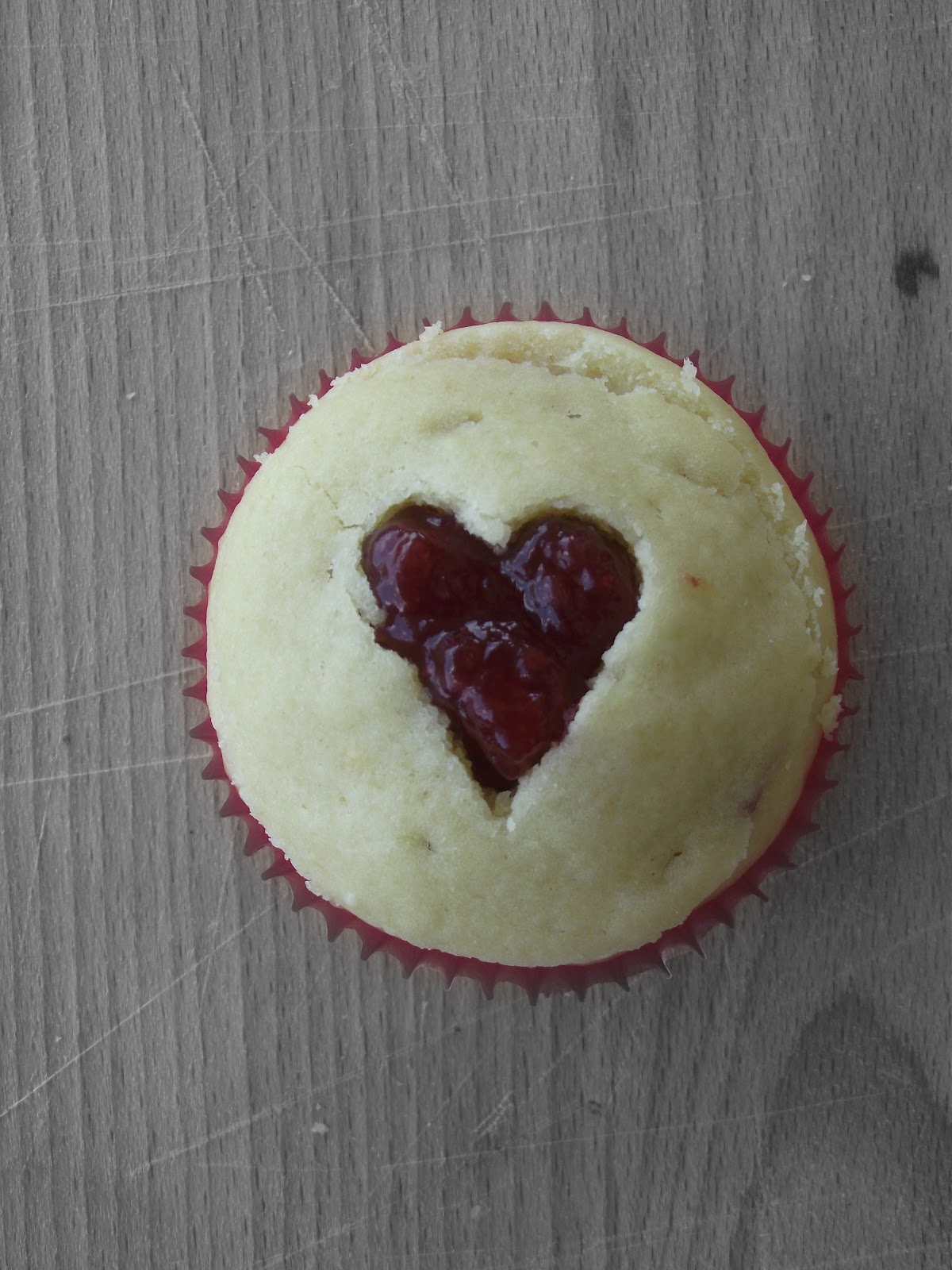 Preparate quindi l’impasto dei muffin seguendo la ricetta che trovate cliccando qui. Se desiderate potete utilizzare come base anche i muffin al cioccolato.Rivestite uno stampo da muffin con i pirottini di carta e, aiutandovi con una sac à poche riempite per 2/3 i pirottini. Estraete dalle vaschette il ripieno congelato e inseritelo al centro di ogni muffin, premendo leggermente ,poi coprite con un altro cucchiaio di impasto di modo che copra completamente il cuore. Ricordate che alla fine l’impasto in ogni pirottino dovrà arrivare a 1 cm dal bordo, altrimenti il muffin in cottura fuoriuscirà dal pirottino risultando piatto. Cuocete i muffin con il cuore per 25 minuti a 170°C (forno ventilato), quando saranno pronti estraeteli e gustateli tiepidi o freddi !