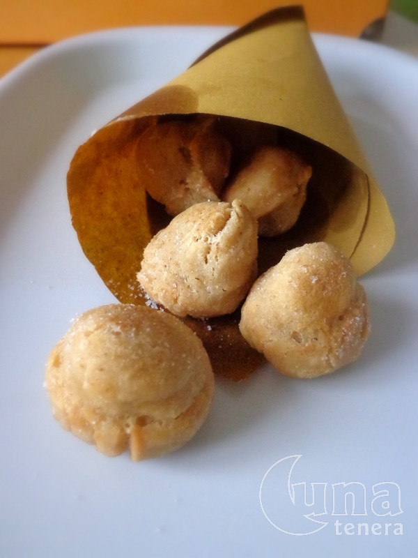 Dopo la lievitazione scaldare l'olio per friggere abbondante in una padella e mettere le palline d'impasto a cuocere. Le palline sono dei pezzi presi dall'impasto, non lavorati, ma semplicemente staccati e messi a friggere. Appena prendono il colore dorato sono pronti.