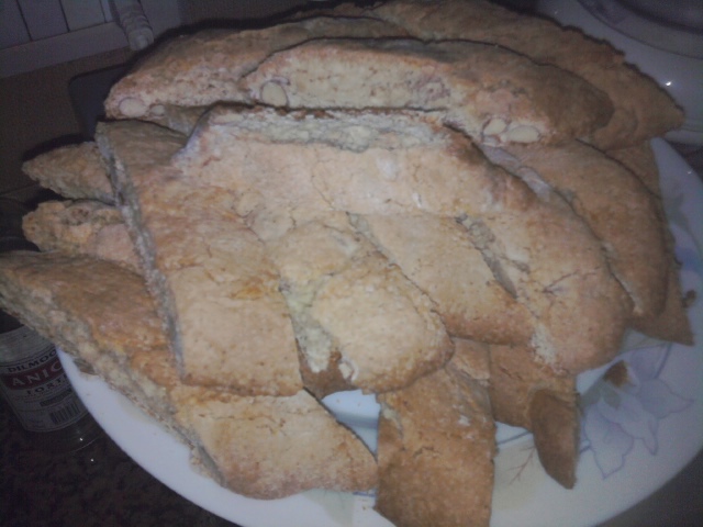 Prendere una teglia da forno, mescolare lo zucchero con le uova ed aggiungere il lievito, la farina e le mandorle, lavorare bene il tutto fino ad ottenere un impasto ben consistente. Con la pasta ottenuta fare dei piccoli rulli del diametro di 2 cm sui quali spalmare bene un uovo. Mettere i rulli nel forno per circa 20 minuti a 200°. Una volta cotti tagliare i rulli in obbliquo per ottenere la forma dei cantucci.