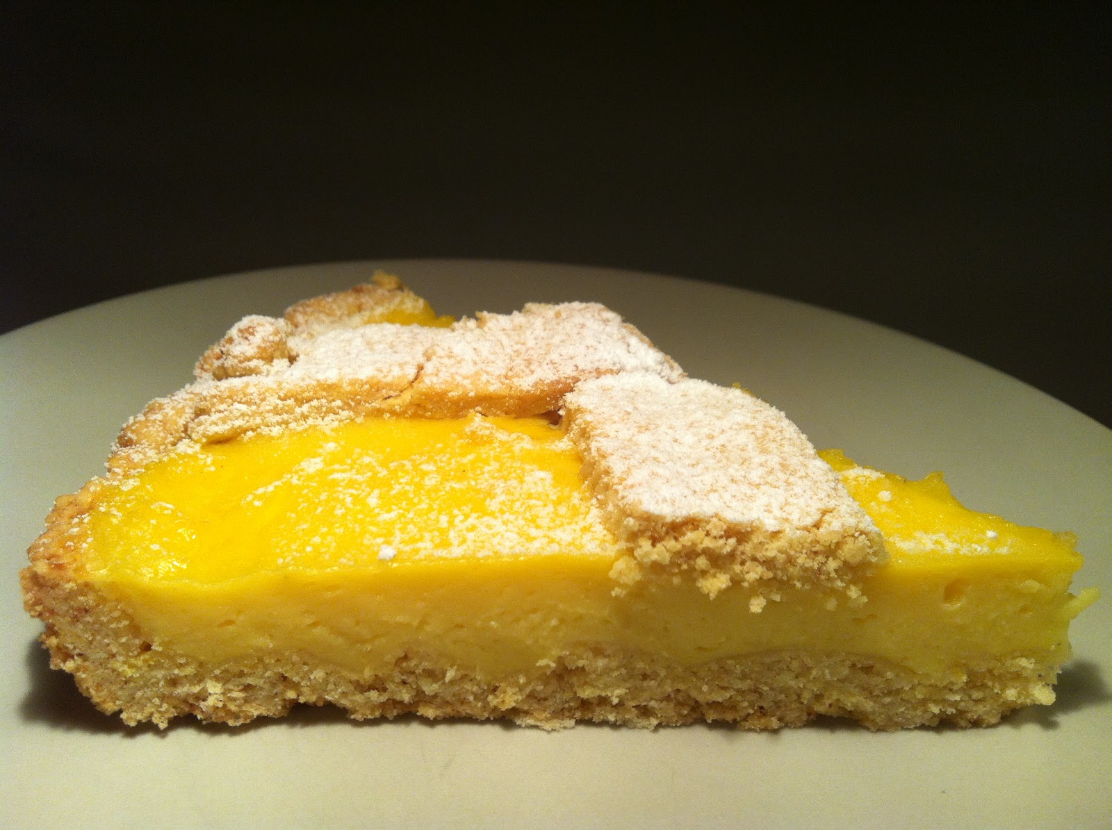 Versate la crema nel guscio di frolla, livellatela bene in superficie con la lama di un coltello e passate la crostata in frigorifero per circa 3 ore.