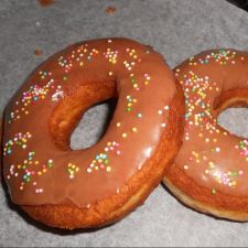 Quando i Donuts si saranno raffreddati, intingere uno dei due lati nella glassa, rigirarlo e lasciare riposare in piano finchè la glassa diventa solida.