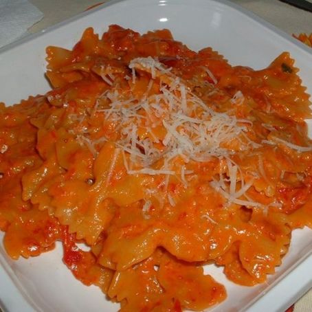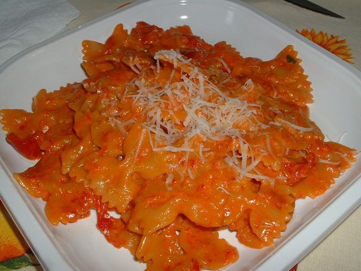 Servire la pasta con parmigiano, e i peperoni rimasti.
