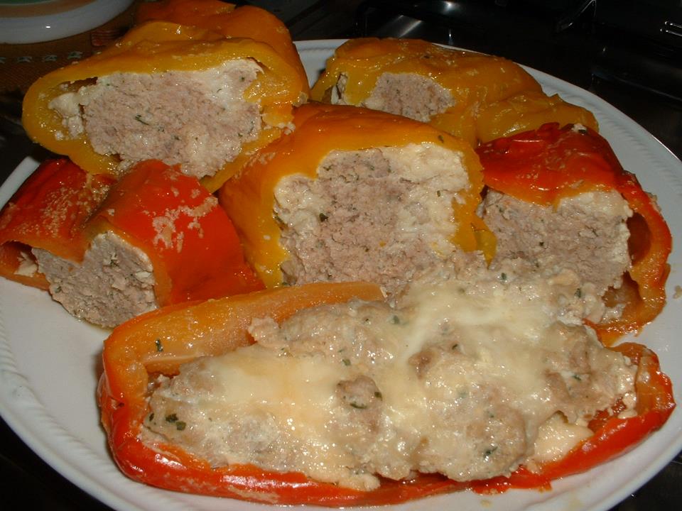Spolverate con il formaggio grattugiato ed il Parmigiano. Aggiungete il salamino tagliato a fettine. Mettete in forno e fate cuocere per 20-25 minuti, fino a che i peperoni non saranno ben cotti ed il formaggio sarà fuso.