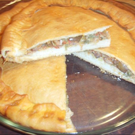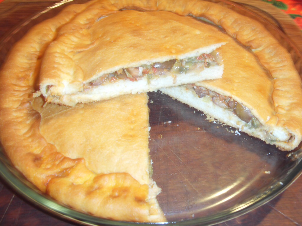 Ungiamo abbondantemente d'olio la teglia e foderiamola con il disco di pasta, riempiamo uniformemente con il composto di carne e chiudiamo il calzone con un altro disco che otterremo dal rimanente impasto.