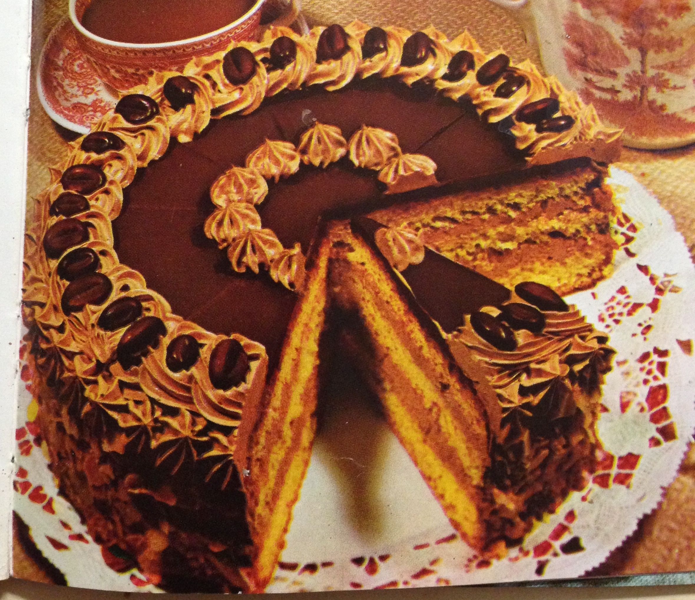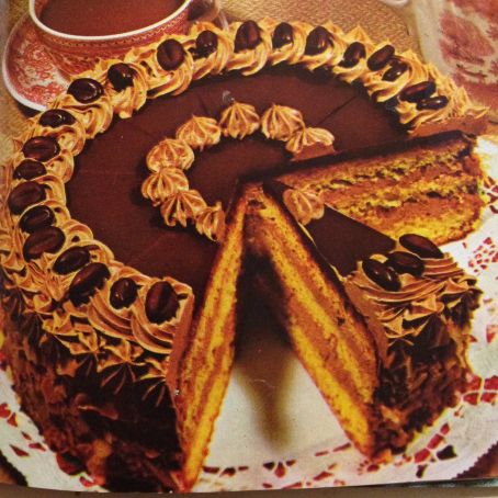Tagliare la torta in 3 strati, inzuppare la torta con un liquore dolce insieme a del caffè diluito, spalmare 2 strati inferiori con la crema al burro, avanzare un po’ di crema per la guarnizione.