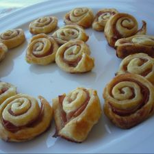 Adagiare i rotolini sulla placca del forno, distanziati l'uno dall'altro. Spennellarli con il tuorlo d'uovo e fare cuocere in forno a 180° per 30 minuti circa.