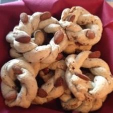 Unisci i bastoncini, attorcigliali su se stessi e unisci a ciambella. Decorali con le mandorle e mettili a lievitare, quando avranno raddoppiato il volume infornali a 180° fino a cottura completata cioè quando saranno belli dorati.
