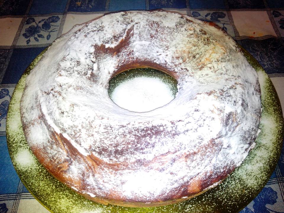 Una volta raffreddata, cospargere la ciambella di zucchero a velo.