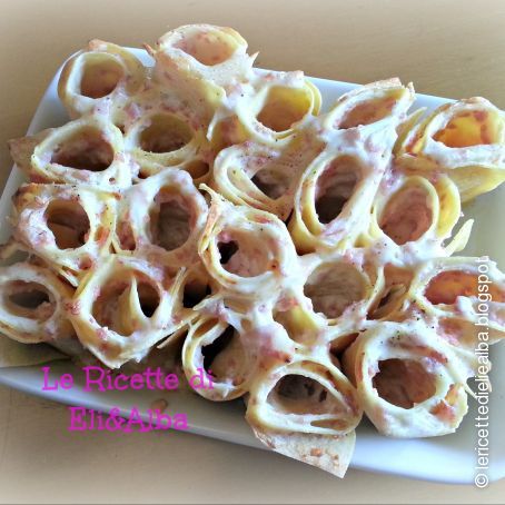 Procuratevi una teglia e oleatela leggermente. Prendete i rotoli e tagliateli in 3, in modo da ottenere dei piccoli turbanti. Disponeteli nella teglia in verticale e copriteli con la panna light.