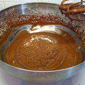 In una ciotola versare la farina, lo zucchero, le uova, la vaniglia e il rum, mescolare il tutto e unirvi il cioccolato freddo ma ancora morbido.