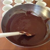 Togliere il burro dal frigo 1 ora prima di usarlo, spezzettare il cioccolato fondente e metterlo in una casseruola, unirvi il burro a pezzetti e far sciogliere il tutto a bagnomariafacendo attenzione che l'acqua non arrivi ad ebollizione. Togliere dal fuoco e far raffreddare.