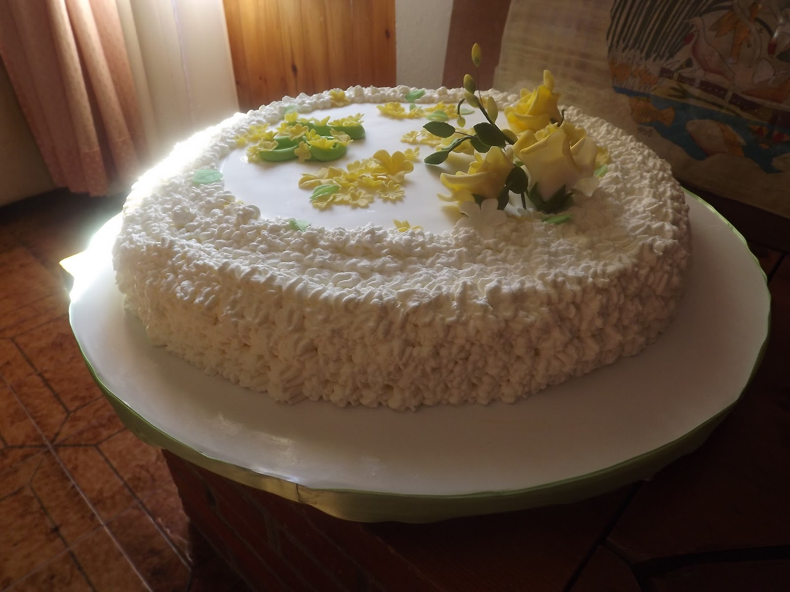 Tagliare in 2 o più parti il pan d spagna, bagnarla con il liquore ottenuto e farcirlo con una delle 2 creme, mettere il secondo strato di pan d spagna e la seconda crema infine mettere l'ultimo strato di pan di spagna e livellarla in modo tale che non ci siano buchi.