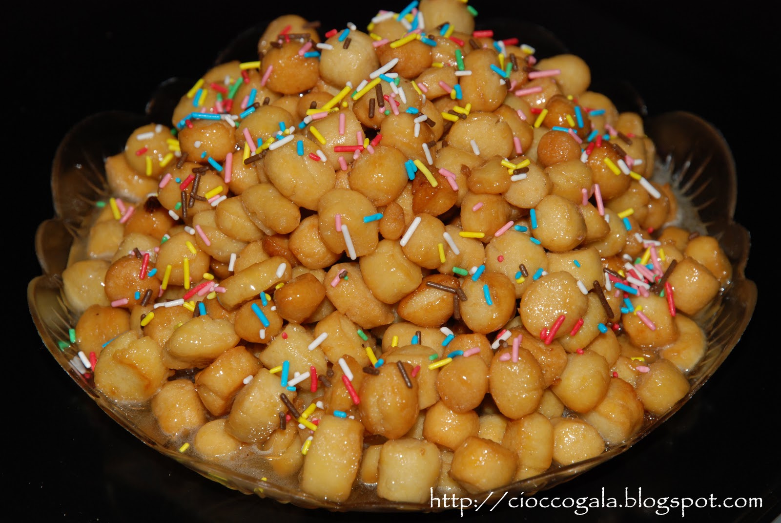 Spegnere il fuoco e versare gli struffoli su di un piatto da portata e aggiungete gli zuccherini "diavolini" o altri e decorate con le ciliege candite.