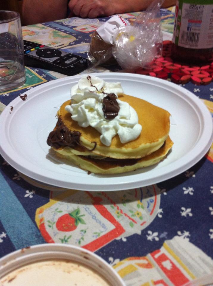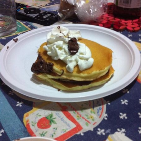 mettere un goccio di olio nella padella e fare cuocere come le crepes .Servirle calde con nutella o marmellate