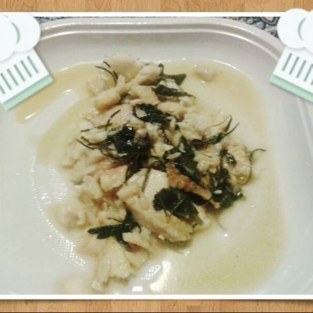 mettere in padella i filetti di platessa e lasciateli dorare e insaporirsi insieme alle erbe.