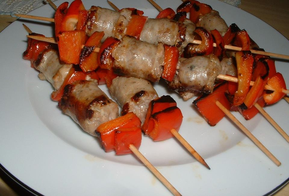 Li ho infilzati nello spiedino, e ho aggiunto anche le salsicce.