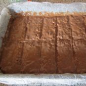 Togliere dalla carta da forno e tagliare in tanti piccoli rettangoli.