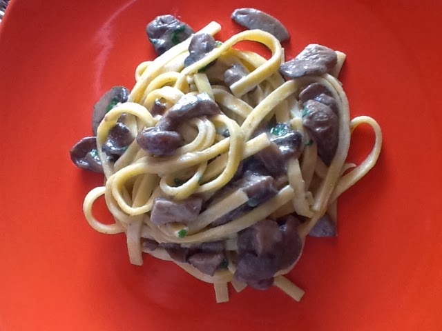 Ho lavato e pulito accuratamente i funghi e li ho fatti trufolale in una padella antiaderente con olio , aglio e una manciata di prezzemolo. Ho cotto la pasta in acqua salata, non appena pronti li ho conditi con i funghi aggiungendo qualche cucchiaio di panna vegetale.