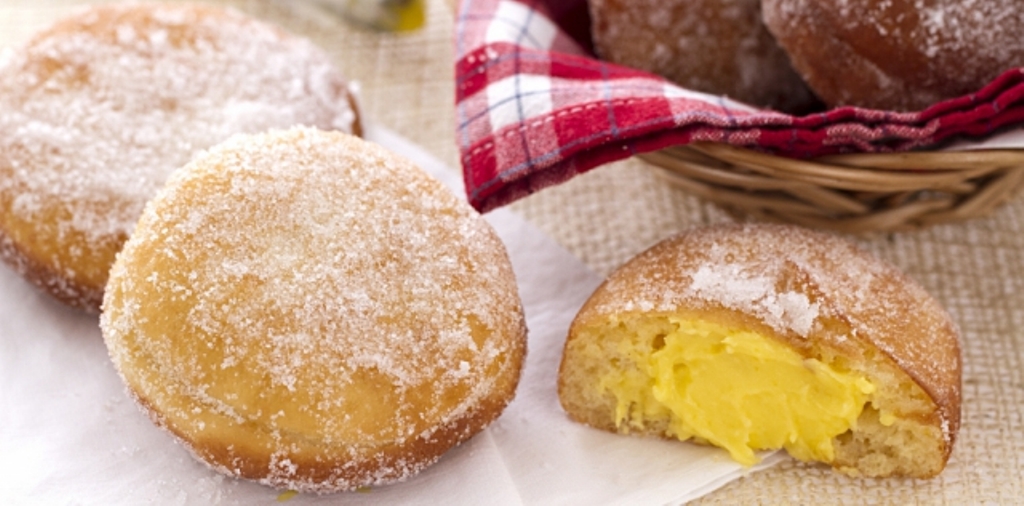 I bomboloni sono golose frittelle tonde, gonfie e morbide a cui non si può resistere. Per preparare i bomboloni bisogna realizzare un impasto lievitato, aromatizzato con scorza di limone, ritagliare dei dischi di impasto, farli lievitare ancora un’oretta e poi friggerli in olio di semi bollente.