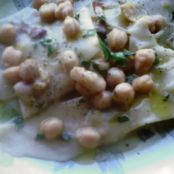 Dopo averli tenuti a bagno in acqua con un pizzico di bicarbonato per almeno 12 ore, lavateli accuratamente e fateli cuocere in acqua abbondante per non meno di 150 minuti. In una padella fate soffriggere nell'olio EVO uno spicchio d'aglio. Quando sarà imbiondito toglietelo ed aggiungete il guanciale fagliato a dadini. Quando anche il guanciale sarà imbiondito versate il tutto nella pentola con i ceci. Aggiungete un po di prezzemolo tritato , regolate di sale e portate a bollore, aggiungendo, se necessario, un po d'acqua.