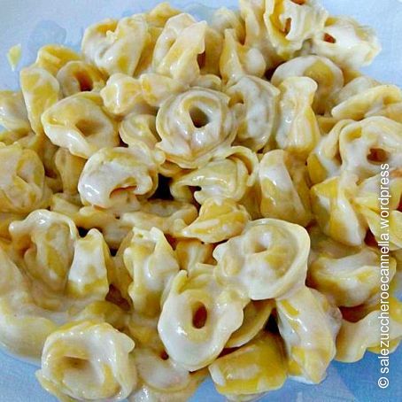 Una volta arrivati a cottura i tortellini, scolateli per bene e conditeli con la crema di parmigiano