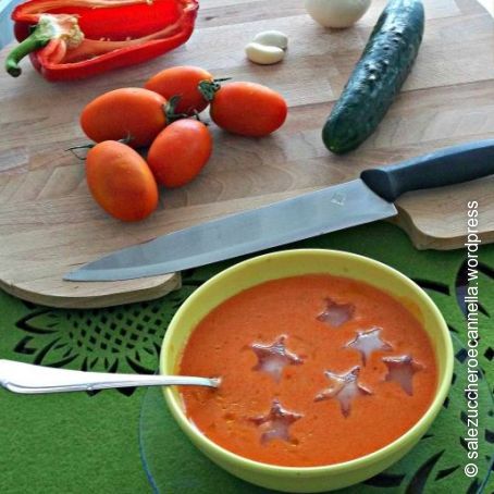 Frullare il tutto finemente, se fate fatica aggiungete qualche cucchiaio d’acqua; passare il tutto al setaccio per eliminare eventuali pellicine di pomodori e peperone. Conservare in frigo per almeno un paio d’ore e servire freddissimo!