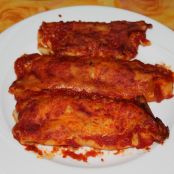 Versare qualche mestolo di ragù in un teglia e disporre in fila le crepes e versare alto ragù sopra;