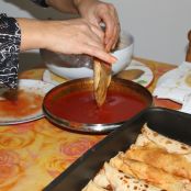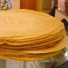Imburrare padella e con un mestolo versare il contenuto cuocere per qualche secondo in ambe due i lati e la crepes è pronta e così via fino alla fine si otterranno circa 30/35 crepes dipende dalla forma della padella